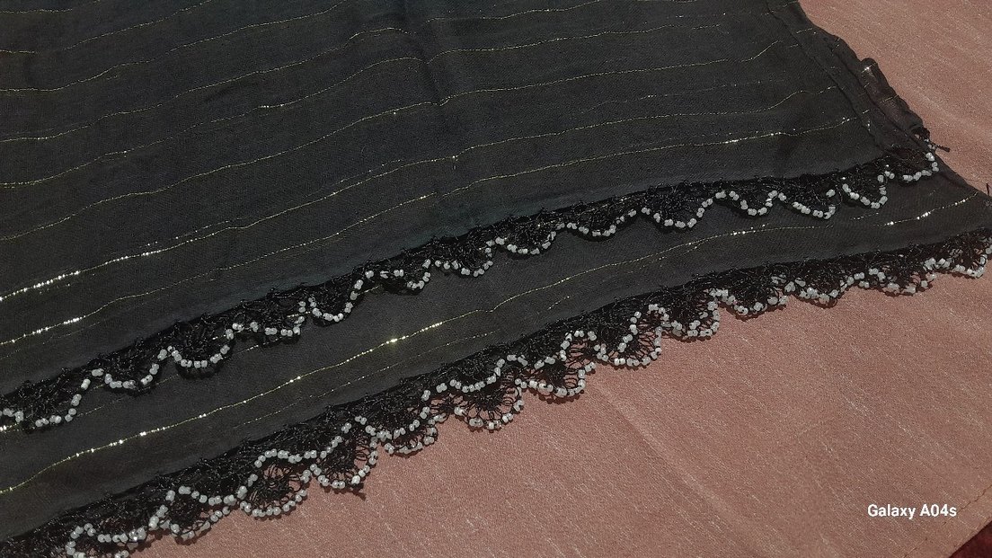 Sentetik kumaştan yapılmış, dantel detaylı siyah kadın saç aksesuarı, gotik ve bohem tarzları retro dokunuşla birleştirir. siyah simli 2 kenar işli boncuklu eskilerden tülbent sandik tulbendi