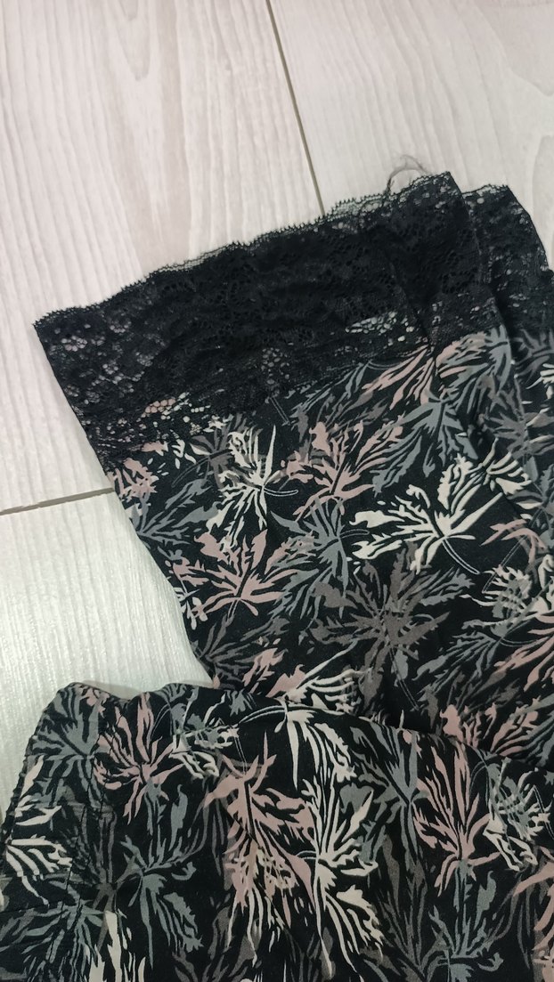 Dantel detaylı, siyah desenli, uzun ve bol kesim kapri