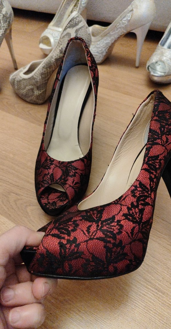 Dantel Detaylı siyah kırmızı Yılan Desenli Dolgu Topuk
