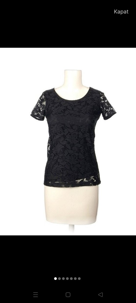 Kısa kollu, dantel detaylı siyah bluz. Yuvarlak yakalı, baskılı sentetik kumaştan, ofis için uygun şık ve trend goth Paris tarzı.