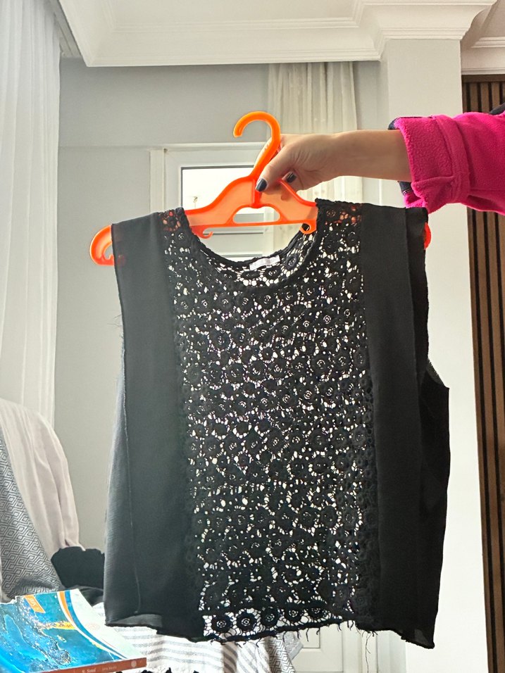 Dantel Detaylı Siyah Kolsuz Bluz