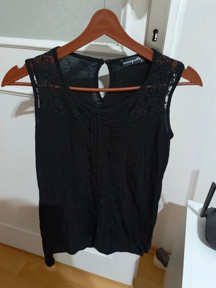 Dantel Detaylı Siyah Kolsuz Kadın Bluz