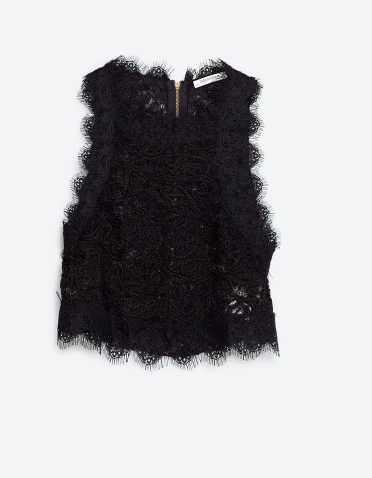 Dantel Detaylı Siyah Kolsuz Mini Bluz