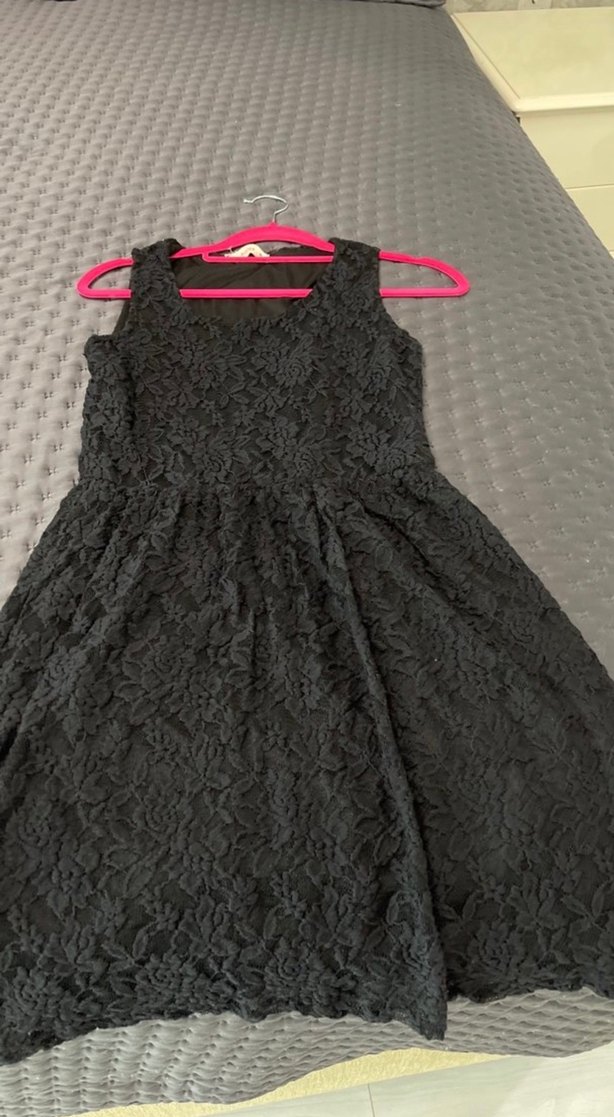 Dantel detaylı, kolsuz siyah midi elbise. M bedendir. Temizdir. Hiç giyilmedi.