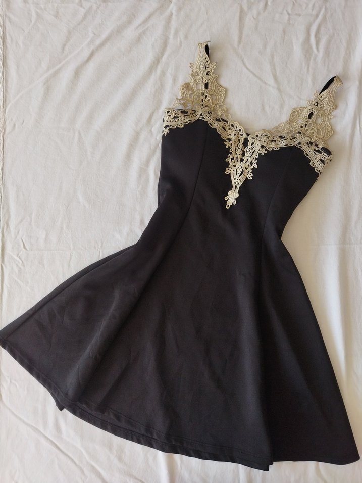 Dantel Detaylı Siyah Mini Abiye Elbise