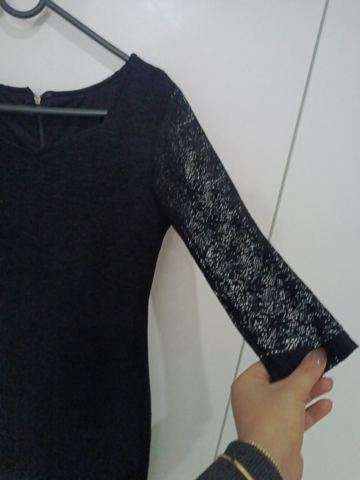 Dantel Detaylı Siyah Midi Elbise