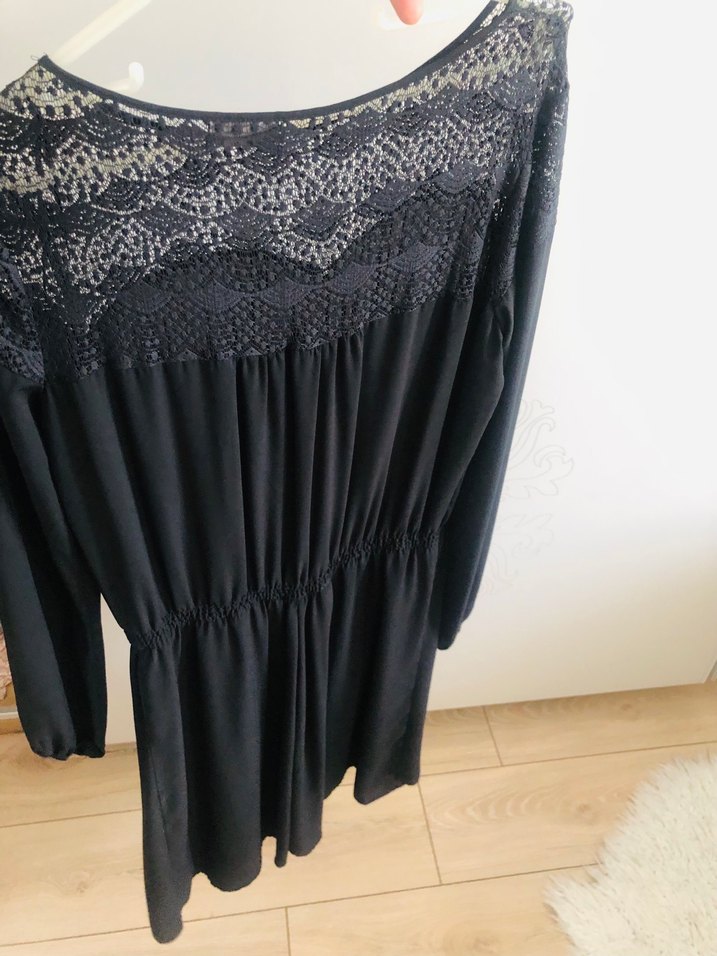 Dantel detaylı üst kısmı ve V yakalı, uzun kollu, bol kesim siyah midi elbise. Gotik tarzda, bohem ve retro etkileri taşır, günlük kullanım için uygundur. hiç giyilmedi 40-42 beden uyumlu omuzu dantelli, bu sebepten tesettüre uygun değildir yurtdışı ürünüdür ütü istemez, dökümlü, hafif bir kumaştır, çok rahat
