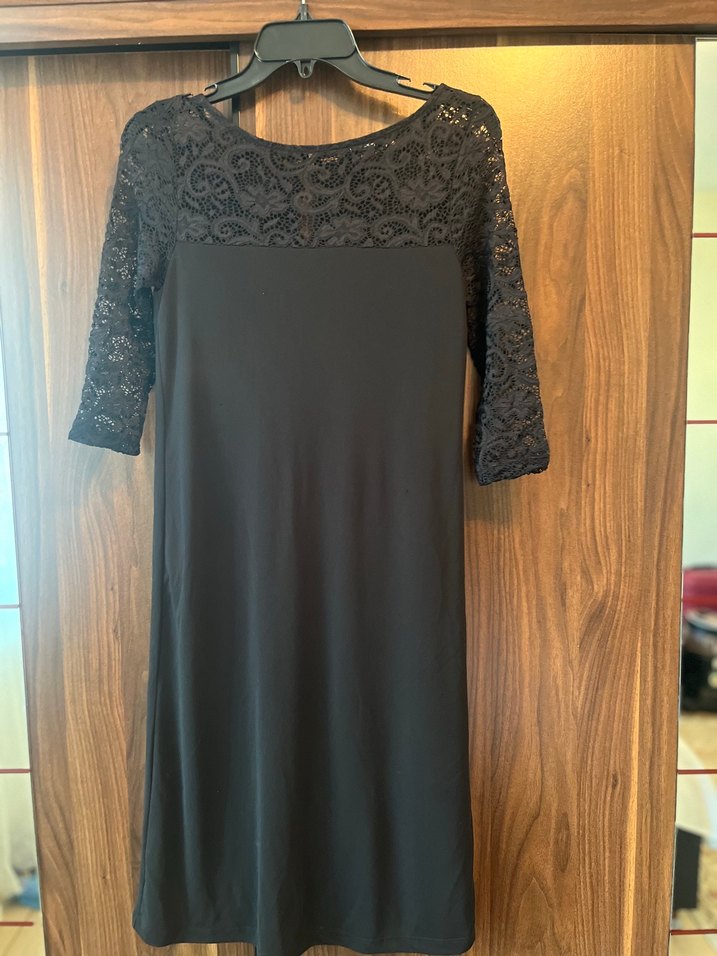 Dantel detaylı, tekneden yakalı ve kısa kollu siyah midi elbise, gotik tarzda klasik şıklık sunar.