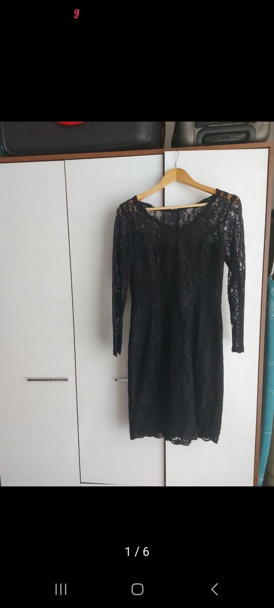 Uzun kollu, V yaka, dantel detaylı siyah midi elbise, klasik zarafeti gotik Paris tarzıyla birleştirir. Romantik akşamlar için uygundur.