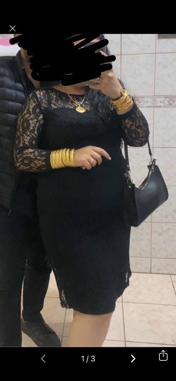 Dantel detaylı, uzun kollu siyah midi elbise, cesur tarzı ve yüksek yakasıyla romantik akşamlar için uygundur.