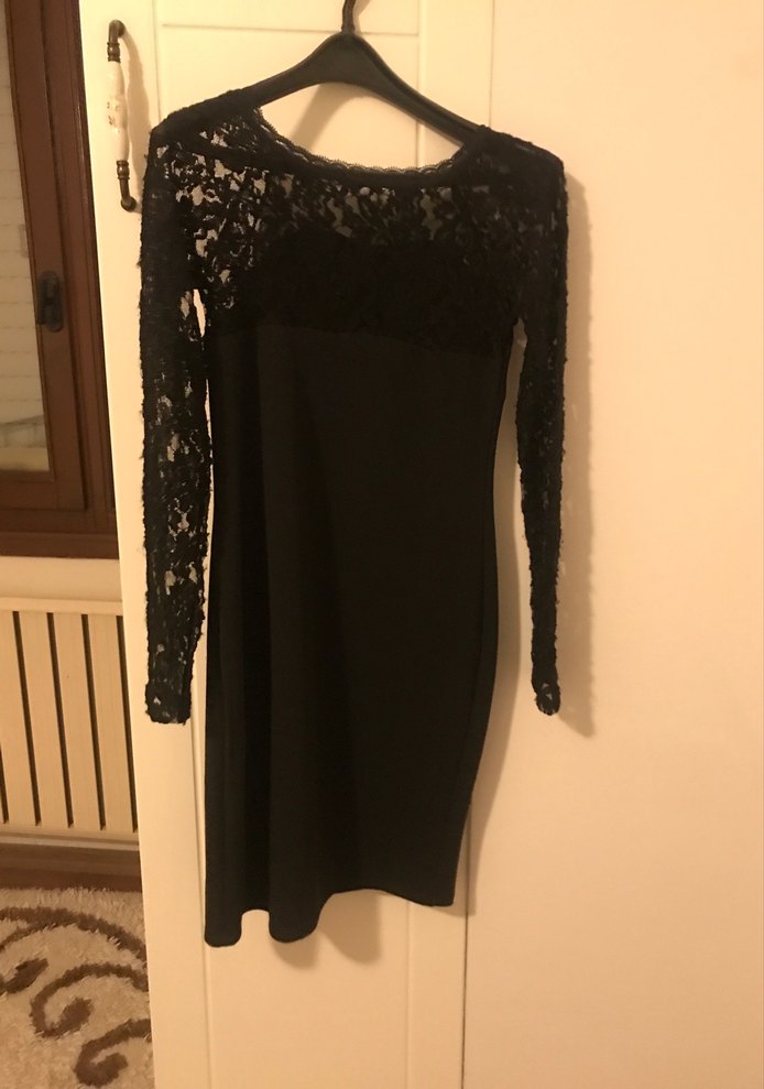 Dantel detaylı uzun kollu, siyah, vücuda oturan midi elbise, gotik tarzıyla romantik akşamlar için uygundur.
