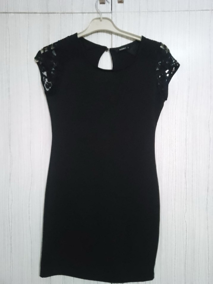 Dantel Detaylı Siyah Midi Gösterişli Elbise tişört