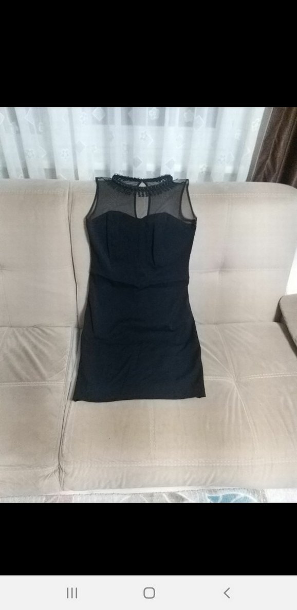 Dantel detaylı, yüksek yakalı, kolsuz ve vücuda oturan siyah mini elbise, cesur gotik tarz için uygun. AMBAR mağazasından alınmıştır. çok iyi durumda