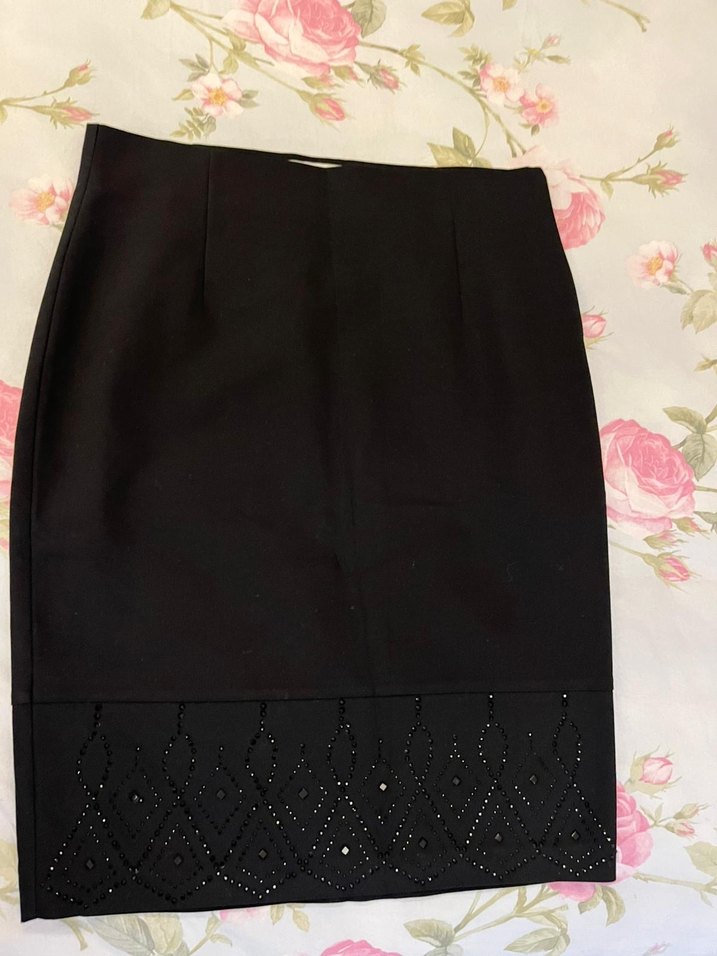 Dantel Detaylı Siyah Midi Kalem Etek