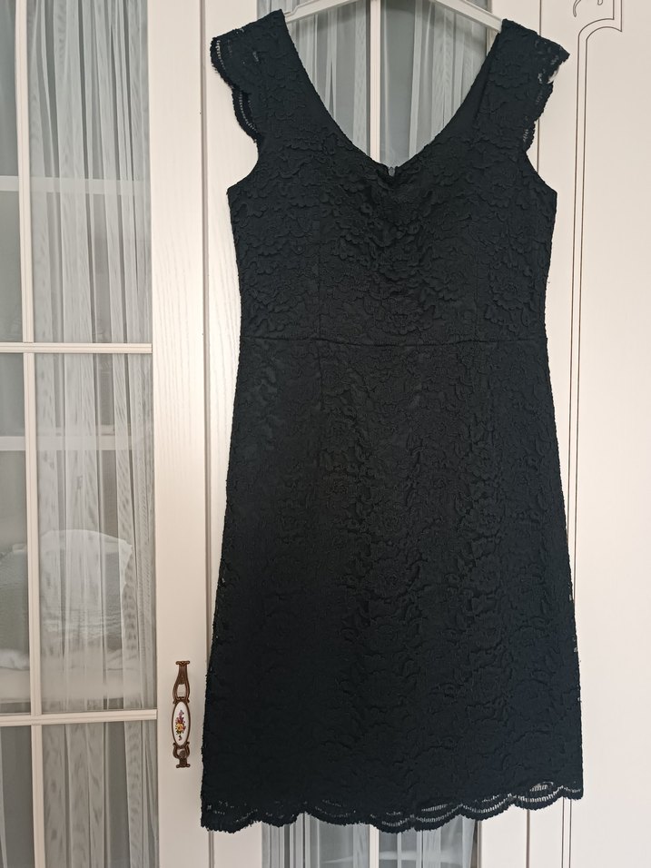 Dantel detaylı, V yaka ve kolsuz siyah midi elbise, klasik gotik şıklığını romantik akşamlara taşır.