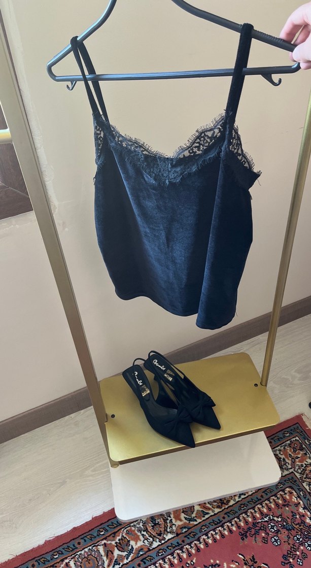 Siyah kadife kumaştan, dantel detaylı ve askılı, straplez yaka, kısa ve bol kesim mini üst. Günlük kullanıma uygun, rahat ve şık.