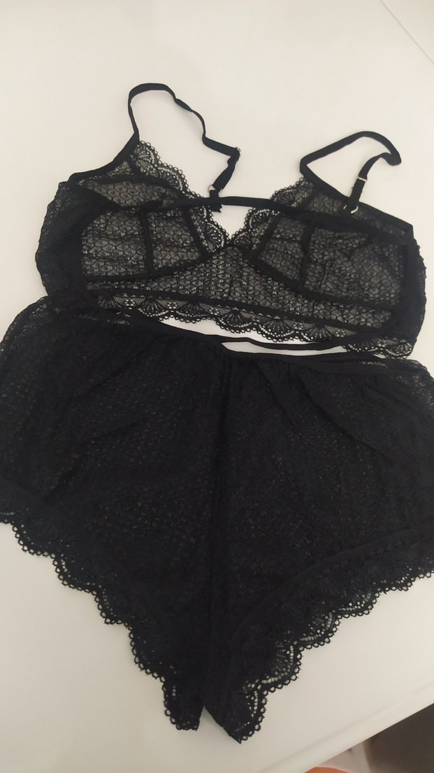 Dantel detaylı, V yaka ve askılı kısa siyah büstiyer. Yumuşak örme kumaştan, cesur gotik tarzda romantik akşamlar için uygun.