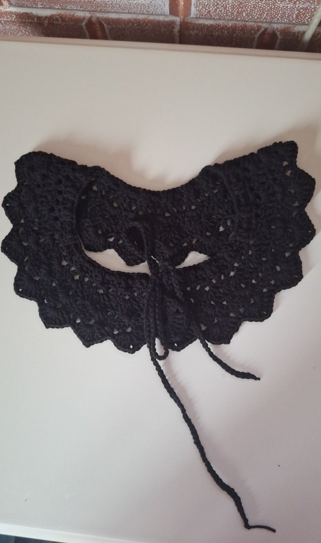 Dantel detaylı siyah örme fular, gotik tarzı yansıtır. Bohem ve retro görünüm için boyunda bağlanabilir.
