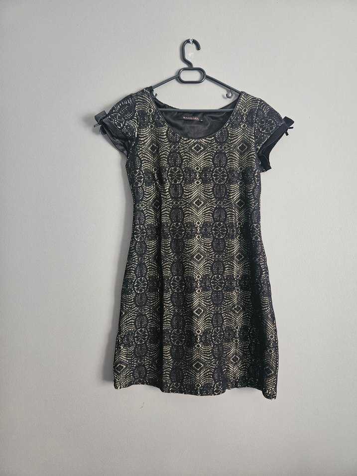 Siyah ve sarı renklerde, dantel desenli midi elbise. Kısa kollu, V yakalı, dantel detaylı, günlük kullanıma uygundur. 40 beden yazmasına rağmen kalıbı biraz dar olduğundan 38 (M beden) olarak işaretledim.