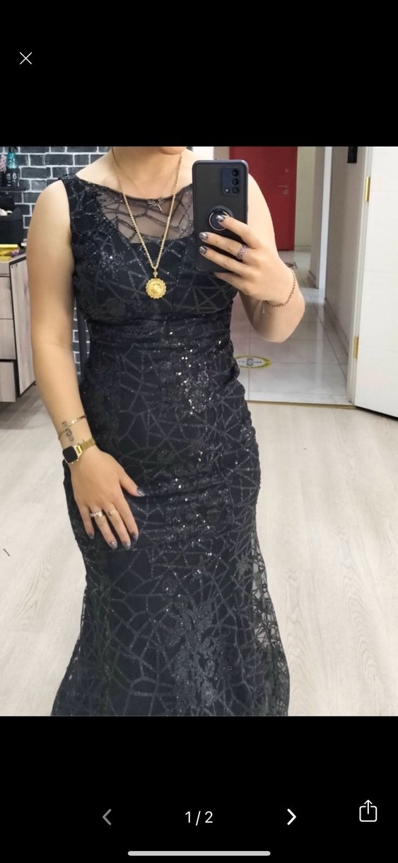 Dantel Detaylı Siyah Uzun Abiye Elbise