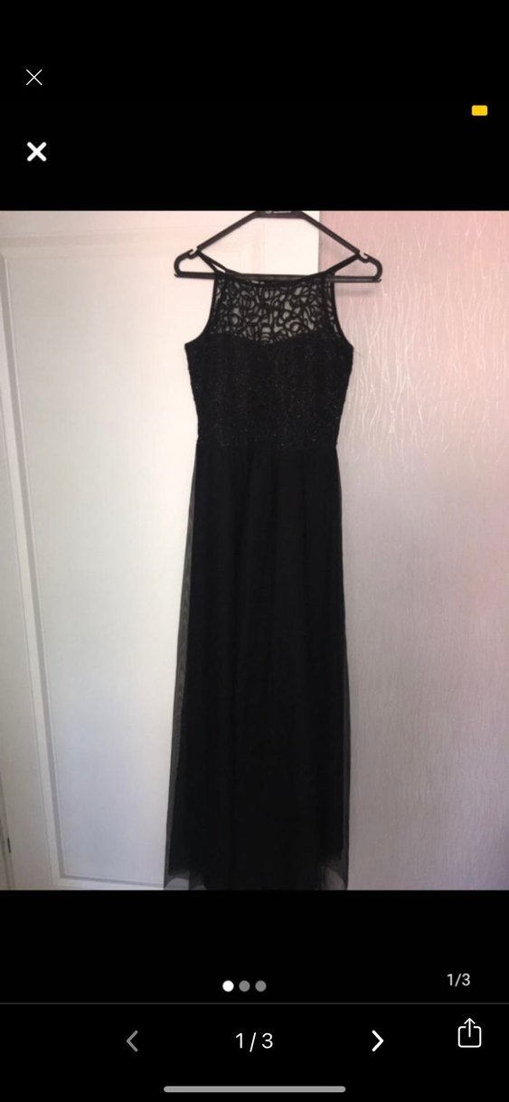 Dantel detaylı, yüksek yakalı ve kolsuz siyah uzun abiye elbise, klasik ve şık bir görünüm sunar. ✨