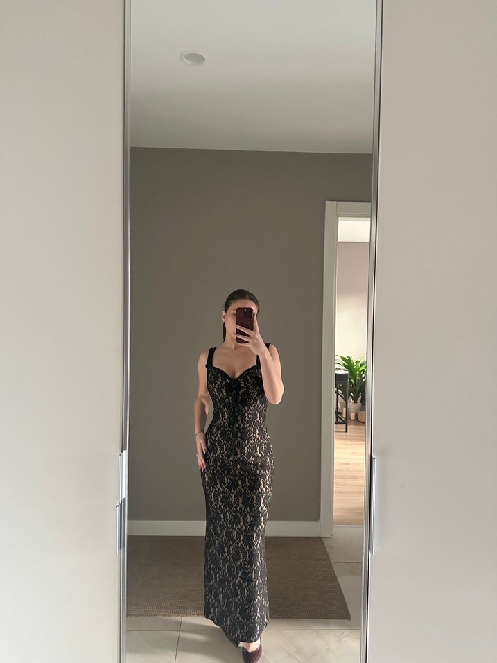 Dantel Detaylı Siyah Uzun Abiye Elbise