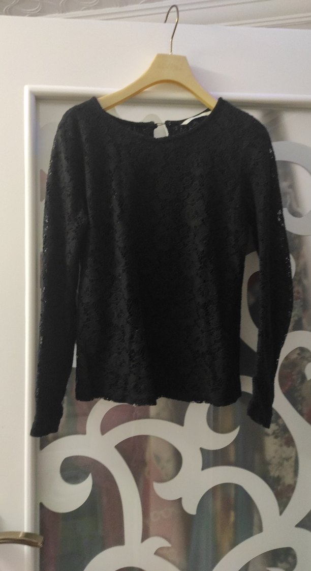 Dantel detaylı, uzun kollu, siyah ve vücuda oturan bluz, yuvarlak yaka ve örme kumaştan yapılmıştır. Günlük kullanıma uygundur.