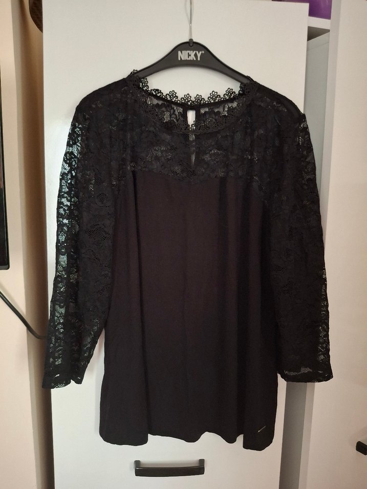 Dantel detaylı, uzun kollu siyah bluz. Salaş kesim ve yuvarlak yaka ile romantik akşamlar için uygundur. defo yok iade yoktur