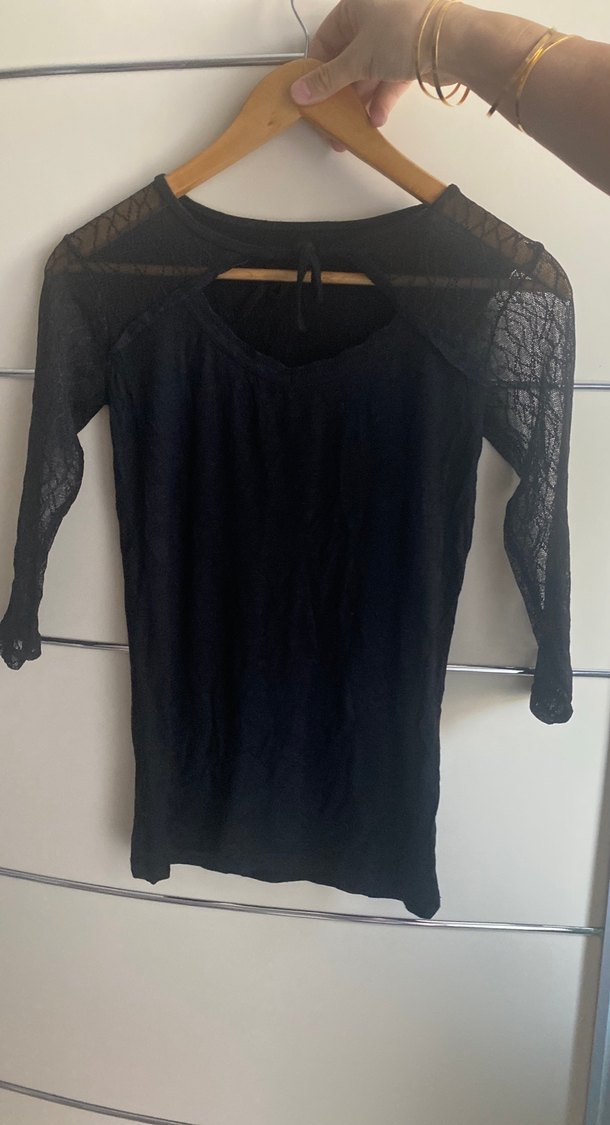 Dantel Detaylı Siyah Uzun Kollu Bluz