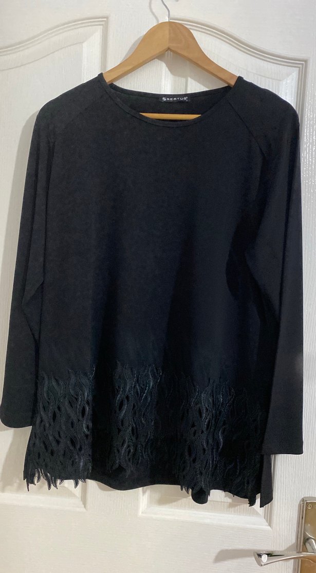 Siyah, uzun kollu, yuvarlak yakalı ve bol kesim bluz. Etek kısmında dantel detayları bulunan gotik tarzda bir parça. Pürüzsüz sentetik kumaştan yapılmıştır. Bir iki defa giyilmiştir sıfıra yakın bir üründür