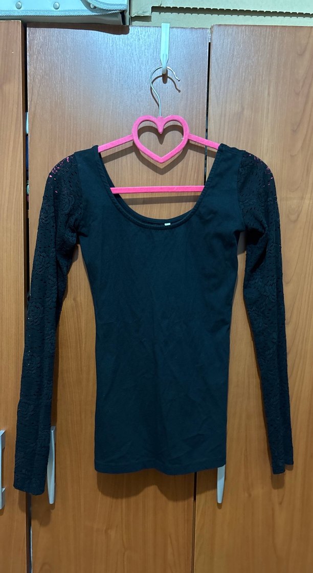 Dantel detaylı kolları ve yuvarlak yakasıyla, siyah, vücuda oturan uzun kollu triko bluz. Romantik akşamlar için uygun.