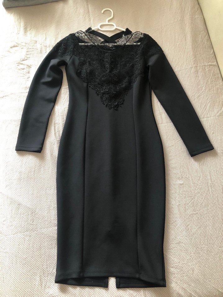 Dantel Detaylı Siyah Uzun Kollu V Yaka Elbise