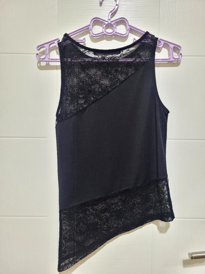 Dantel detaylı, V yaka, kolsuz siyah kadın atlet. Asimetrik midi boy ve dar kesim, sentetik kumaştan üretilmiş gotik tarzda.