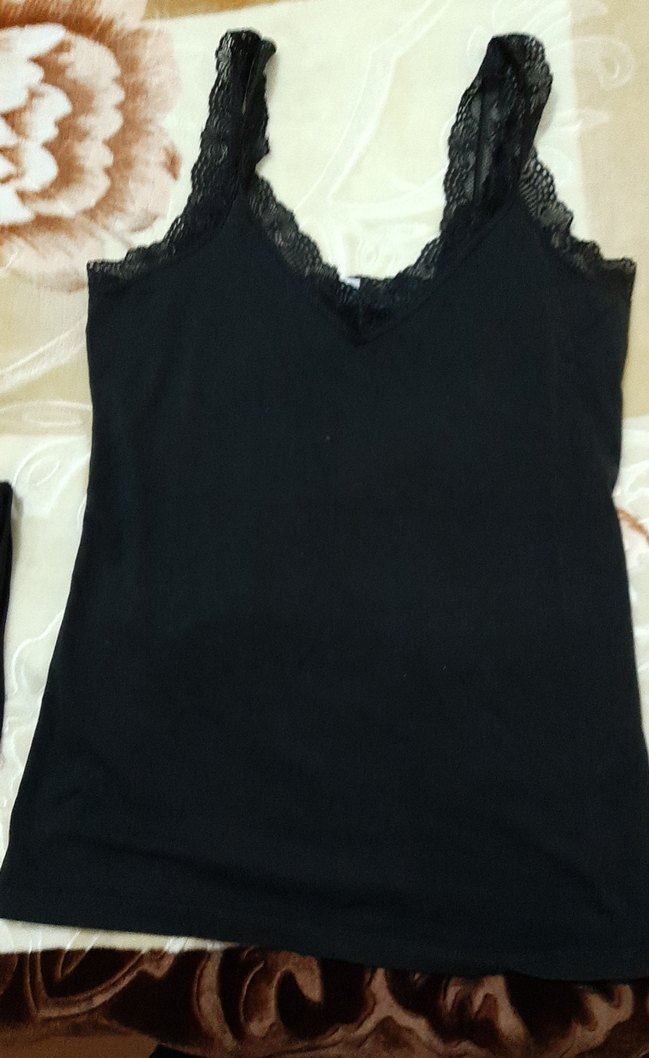 Dantel detaylı V yakalı, siyah ve vücuda oturan kadın atlet. Yumuşak midi boyda ve gotik tarzda, günlük kullanıma uygun.