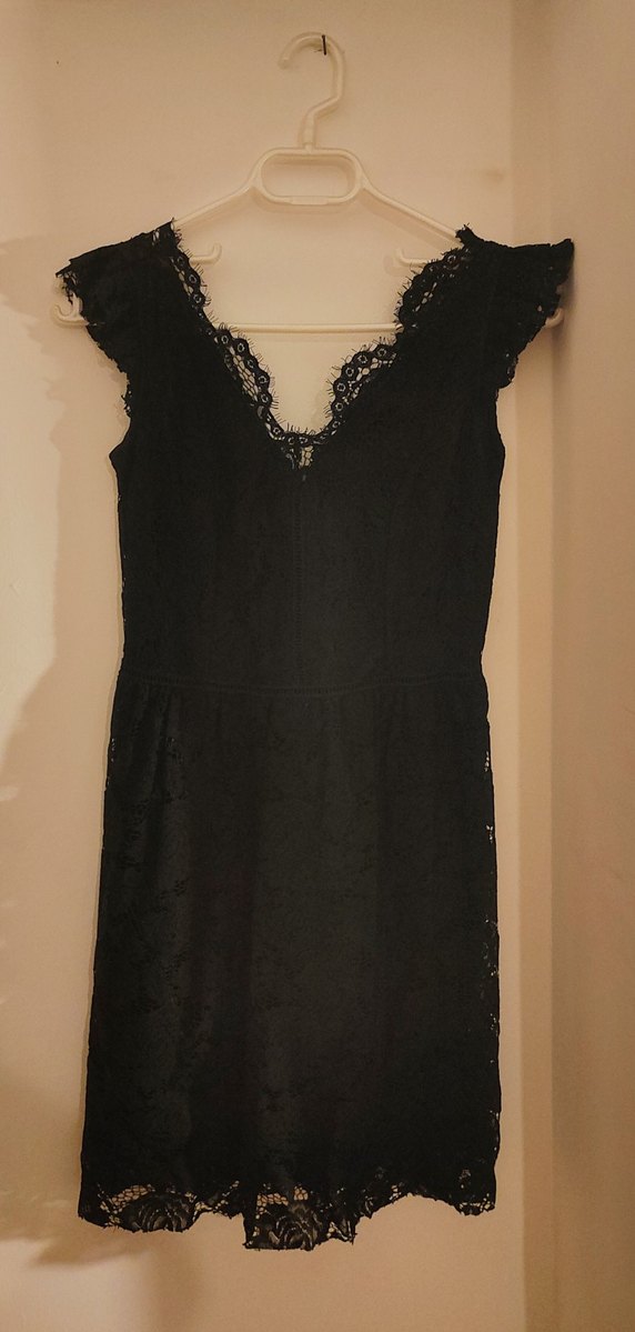 Dantel detaylı, V yakalı siyah midi elbise. Kolsuz ve vücuda oturan kesimiyle romantik geceye uygun gotik tarzda.