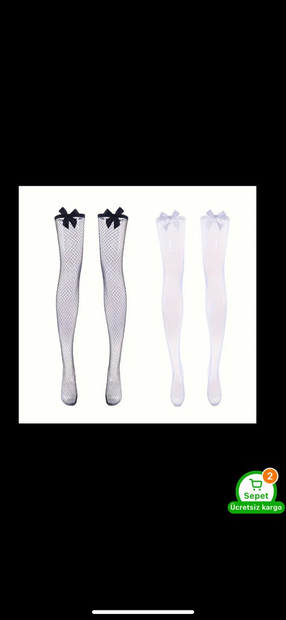 Sentetik kumaştan yapılmış, nakış desenli, dantel fiyonk detaylı, siyah ve beyaz file çoraplar, normal boyda ve vücuda oturan kesimde. penti degilsifir urunler ikisinin fiyati