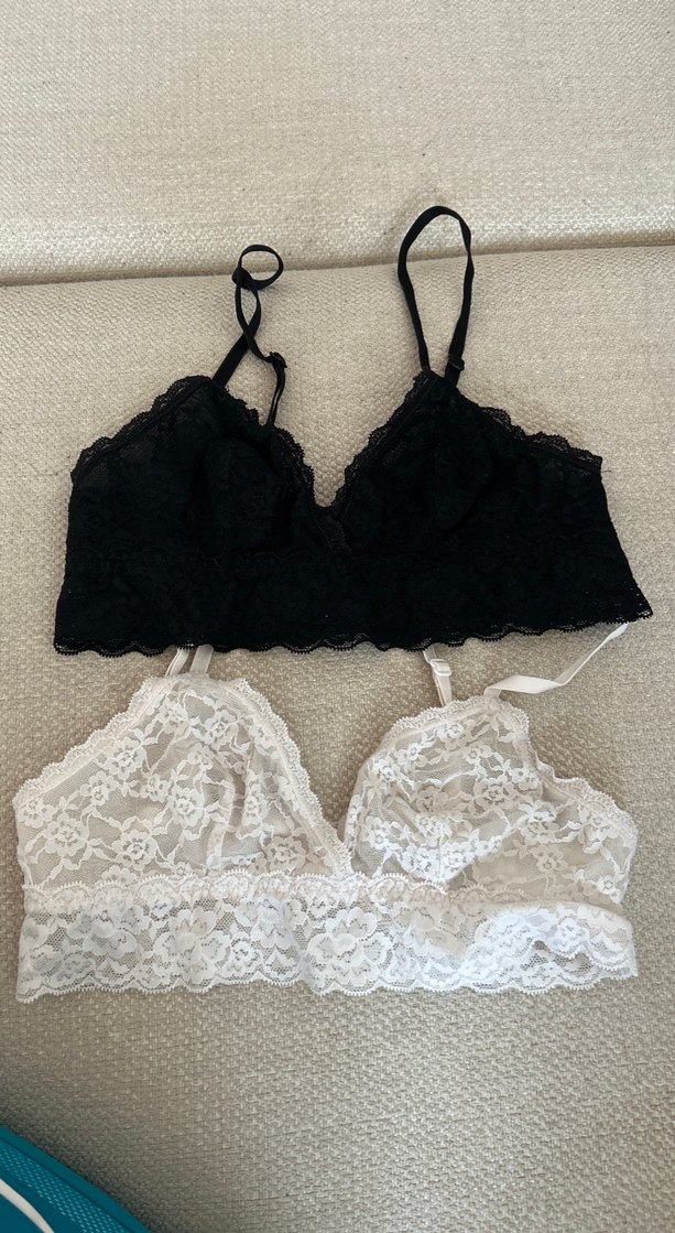 Ayarlanabilir askılı, dantel detaylı siyah ve beyaz braletler. Yumuşak ve detaylı dantel kumaşla, normal boyda ve gotik tarzda.