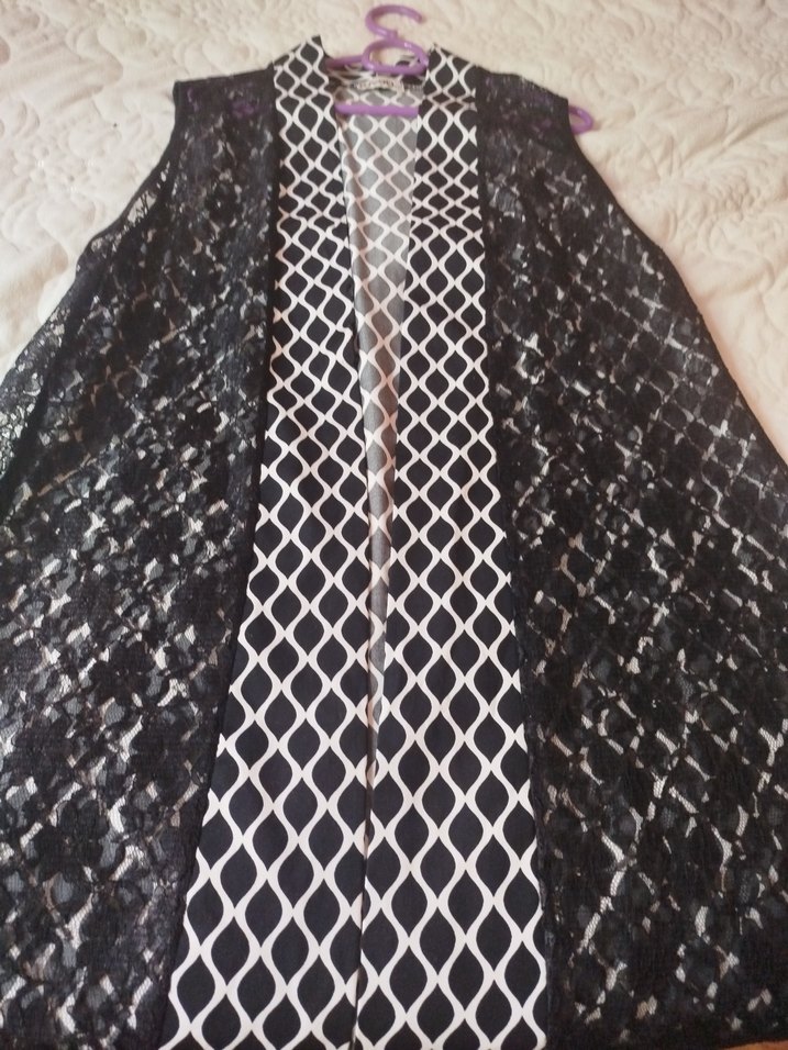 Dantel ve yılan desenli siyah, kolsuz uzun yelek. V yaka ve regular fit ile bohem ve gotik tarzı bir araya getirir.