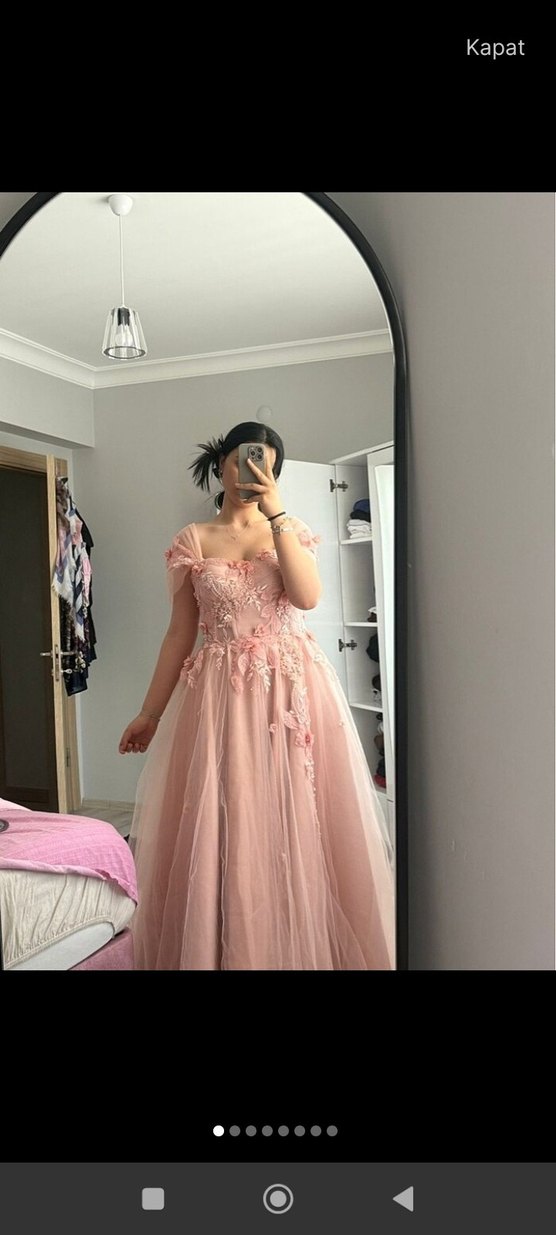Dantel Detaylı Straplez Pembe Midi Nişan Elbisesi