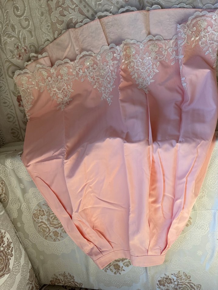 Pastel pembe renkte, uzun uçları fransız dantel modelli tesettür etek 38 beden idi ama 36 ya daraltıldı bel kısmı dip fiyat yazdım fiyat sondur teklife kapalıdır