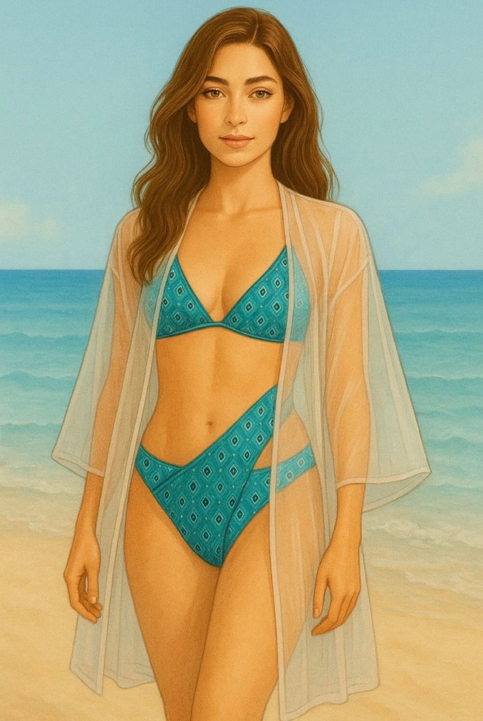 Dantel detaylı, ince askılı ve vücuda oturan turkuaz bikini