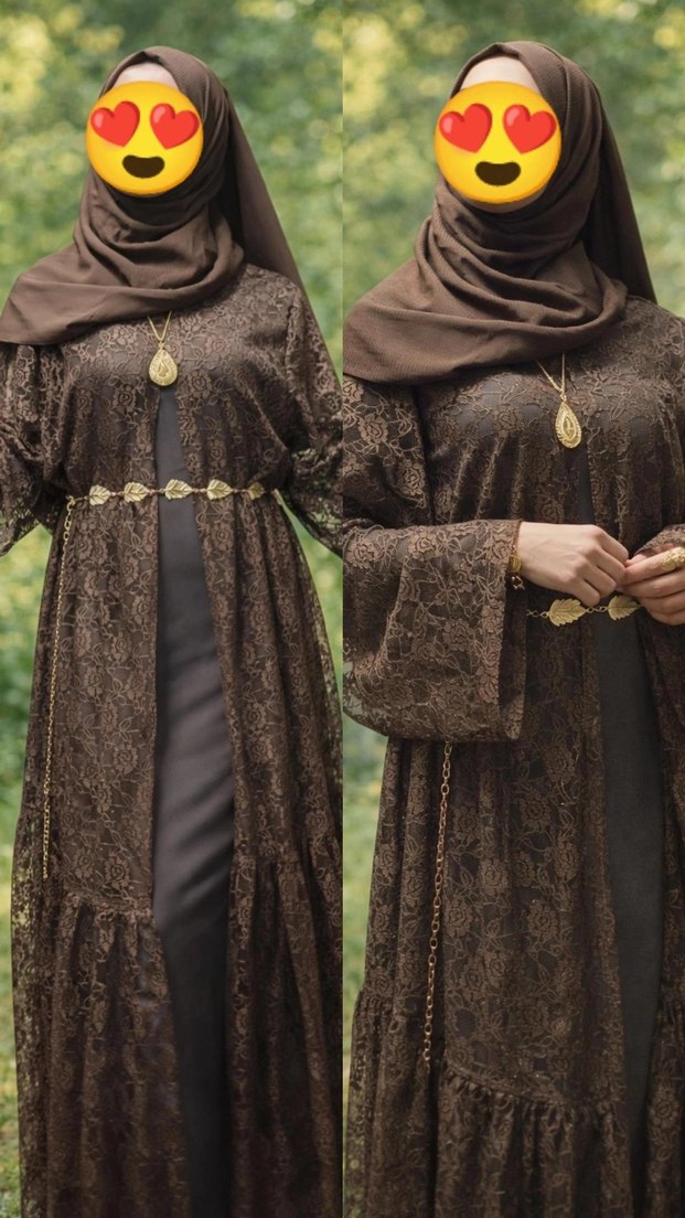 Yüksek yakalı, uzun kollu ve bol kesim kahverengi uzun elbise. Yumuşak sentetik kumaştan, dantel detaylı ve desenli, günlük kullanıma uygun. Muhteşem ikili takımımız sizlerle keyifli alışverişler dilerim☺