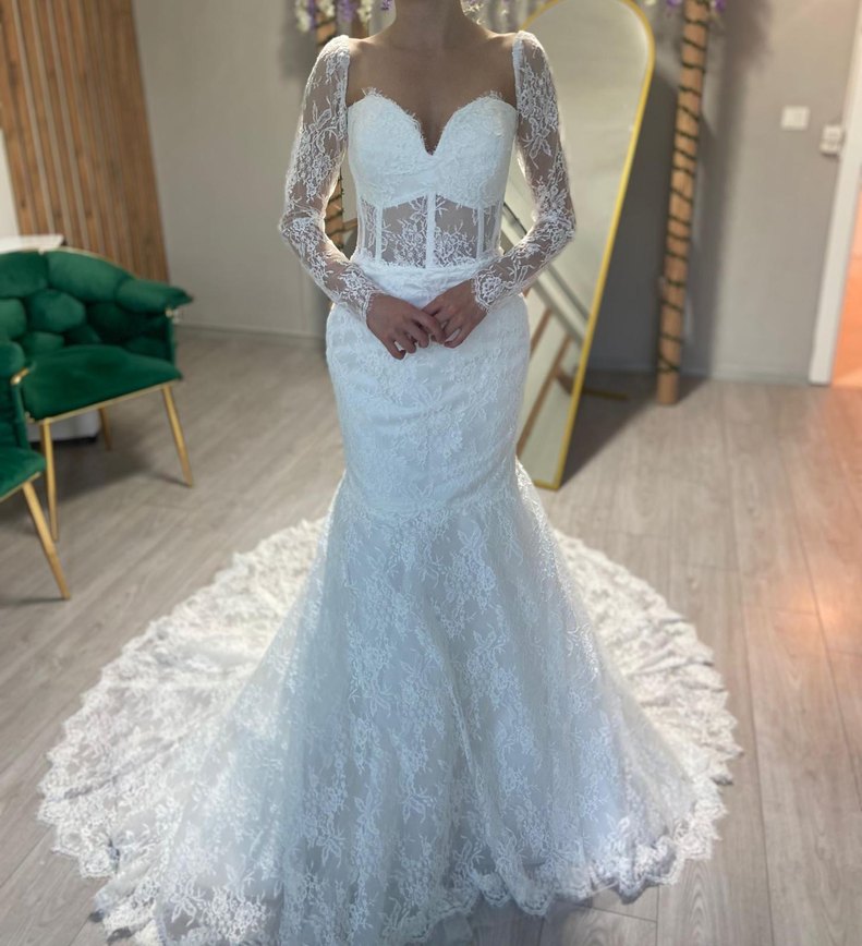 Dantel Detaylı Uzun Kollu Balık Gelinlik