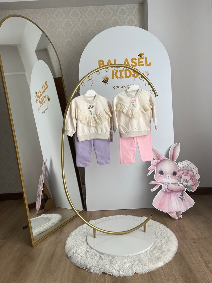 Pastel renklerde, dantel detaylı ve nakışlı desenlere sahip uzun kollu bebek kız takımı. Yumuşak ve rahat kumaş kullanılmıştır. Sıfır ürün fiyatı sabittir 12/18/24 ay bedenleri mevcut
