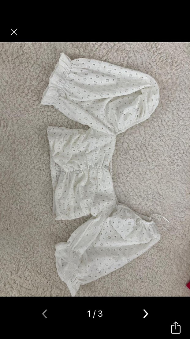 Dantel ve nakış detaylı beyaz keten bluz, kayık yaka ve uzun kolludur. Salaş kesimi ve bohem tarzıyla günlük kullanıma uygundur.