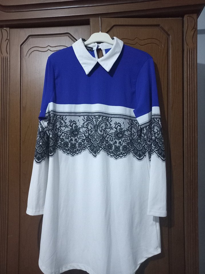 Uzun kollu, yakalı ve bol kesim kadın bluzudur. Mavi ve beyaz renklerde, göğüs ve kollarda baskılı dantel detayı bulunur, sentetik kumaştan üretilmiştir. kullanıldı ama herhangi bir problemi yok ölçüler resimlerde mevcut Alana şimdiden hayırlı olsun