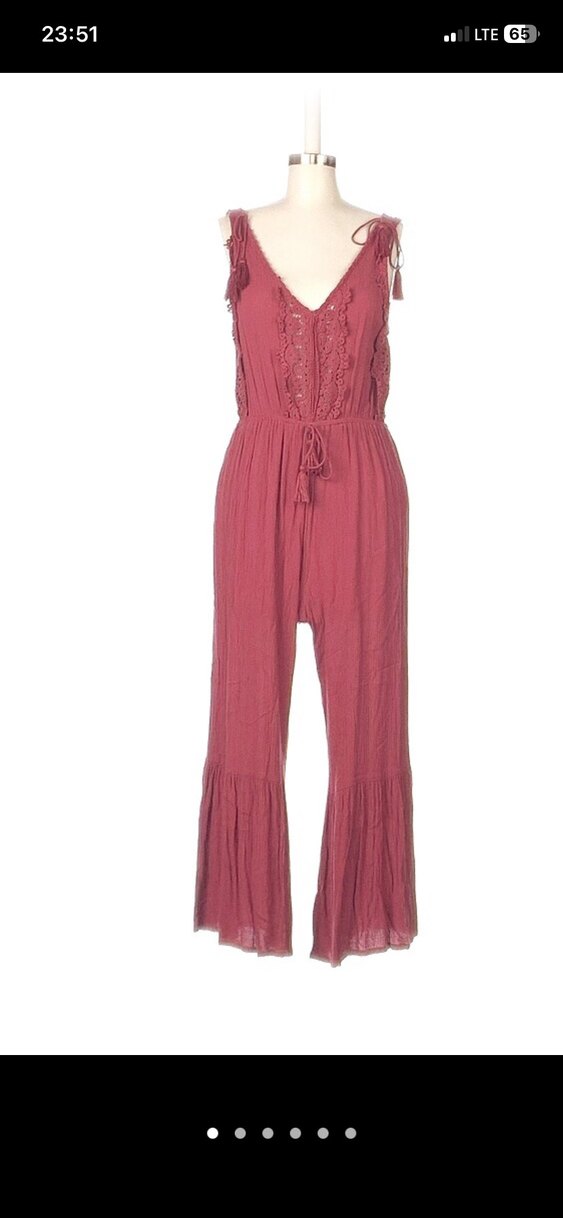 Dantel detaylı, ince askılı uzun pembe tulum. Yumuşak kumaştan, bohem tarzıyla romantik yaz akşamları için uygun. Kumaşı viskon