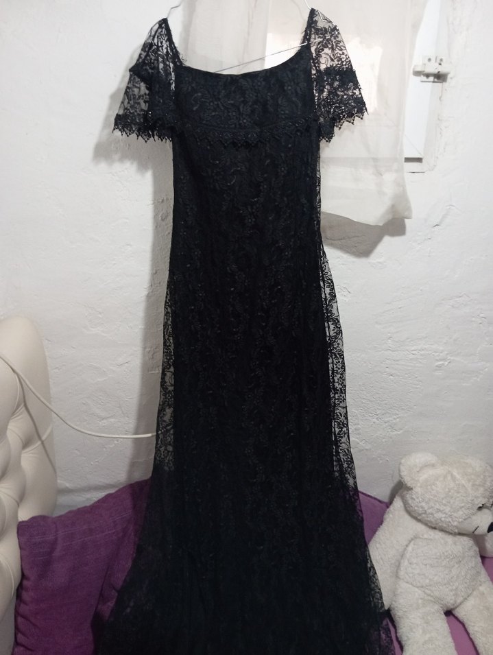 Dantel Detaylı Uzun Siyah Gotik Kadın Elbise