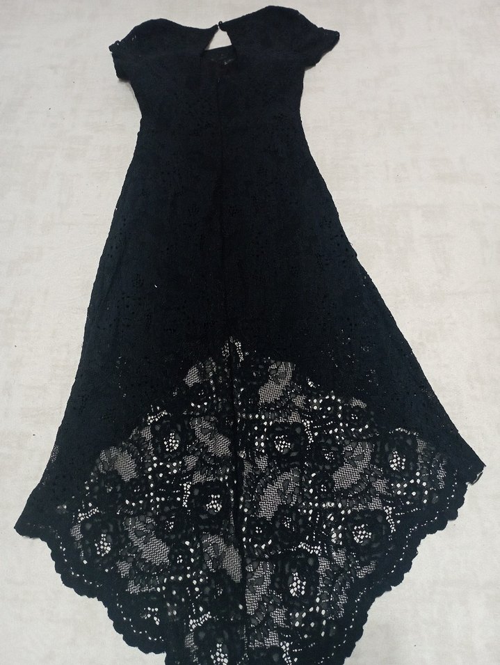 Dantel Detaylı Uzun Siyah Straplez Elbise