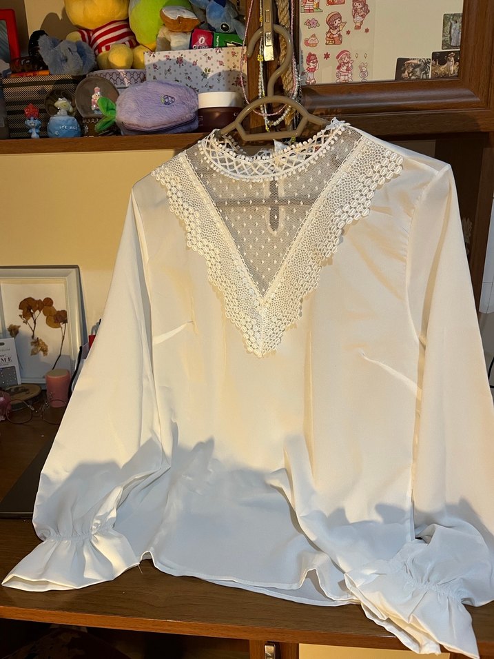 Bir kere giydim yeni, iç gösterebilir V yaka, dantel detaylı beyaz bluz. Uzun kollu, bol kesim ve ipeksi kumaştan. Nakışlı deseniyle bohem tarzını yansıtır.